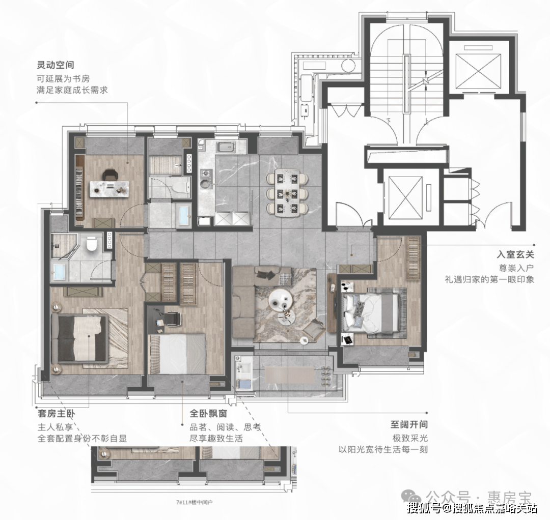 有一种房子,大面积奢石岩板覆于墙面;团聚之时,双南向次卧+北向多功能房,全体来看!